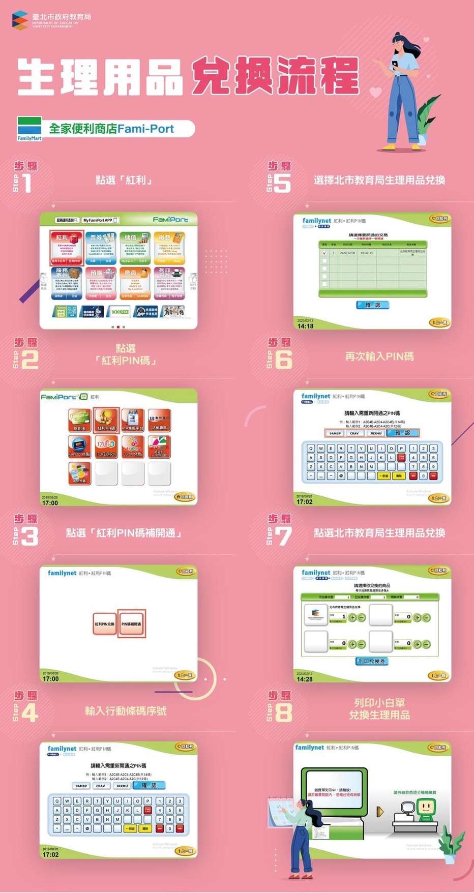 (八)兌換品項:各家超商均提供10種以上可兌換之生理用品,請詳閱兌換券上說明文字,非指定商品不提供兌換。