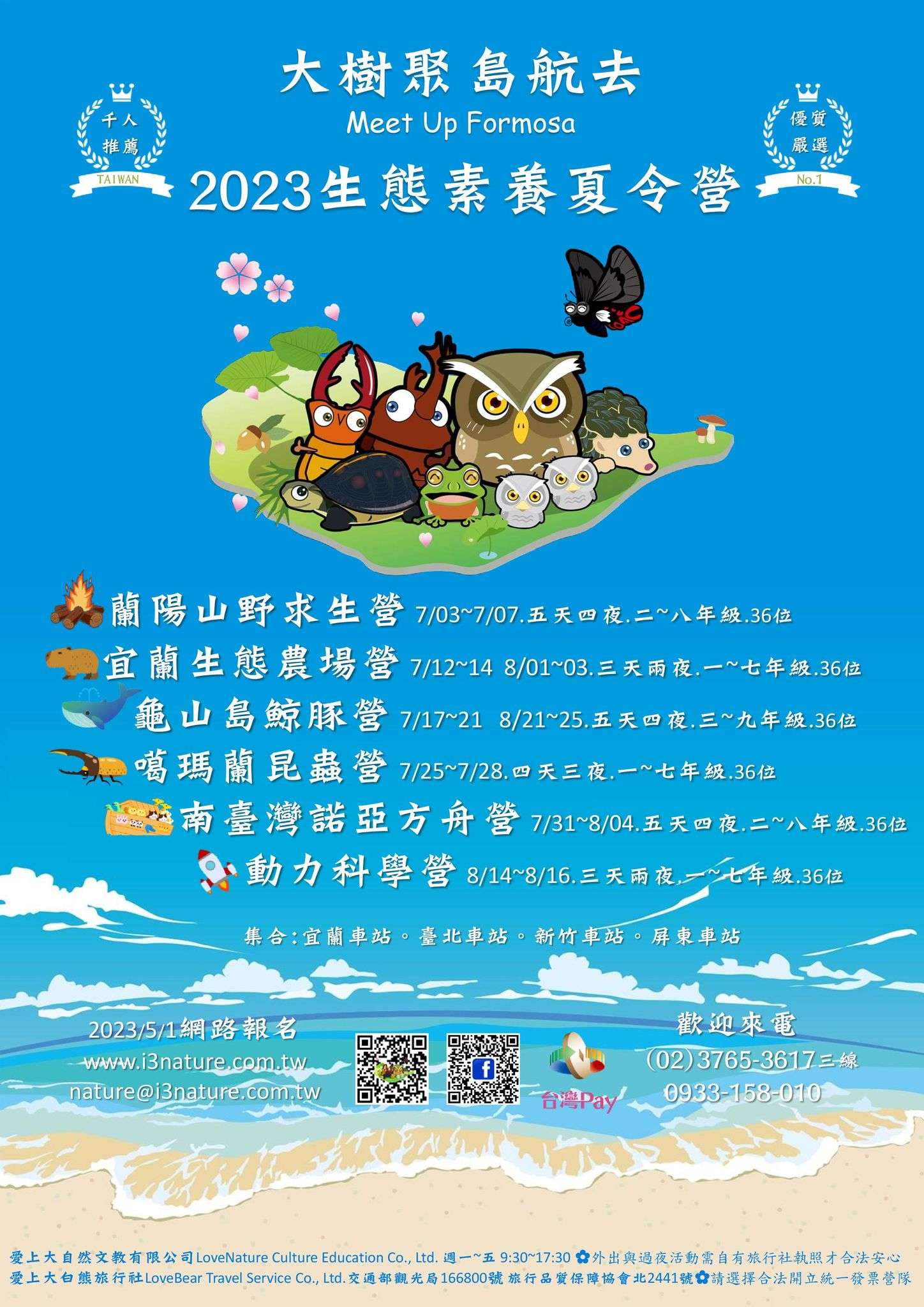 一、營隊課程5月1日開放網路報名,詳見網站:www.i3nature.com.tw。