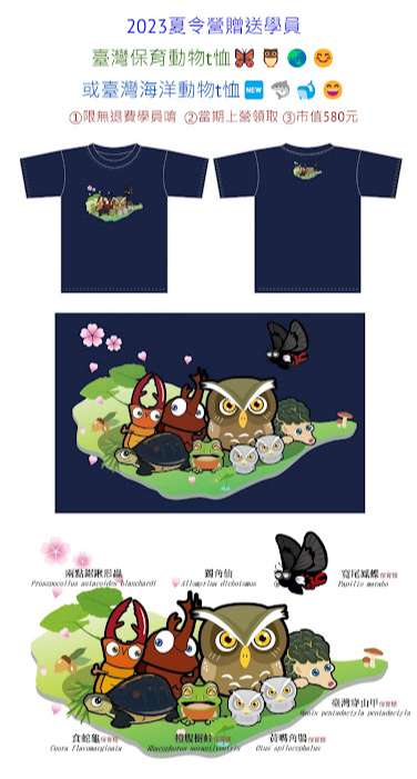 說明:愛上大自然文教有限公司將於112年7月3日~8月25日,舉辦【大樹聚。島航去】2023生態素養夏令營,共六種生態科學營隊課程,共計八個梯次
