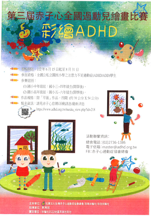 轉知:社團法人台灣赤子心過動症協會總會舉辦第三屆赤子心全國過動兒繪畫比賽
