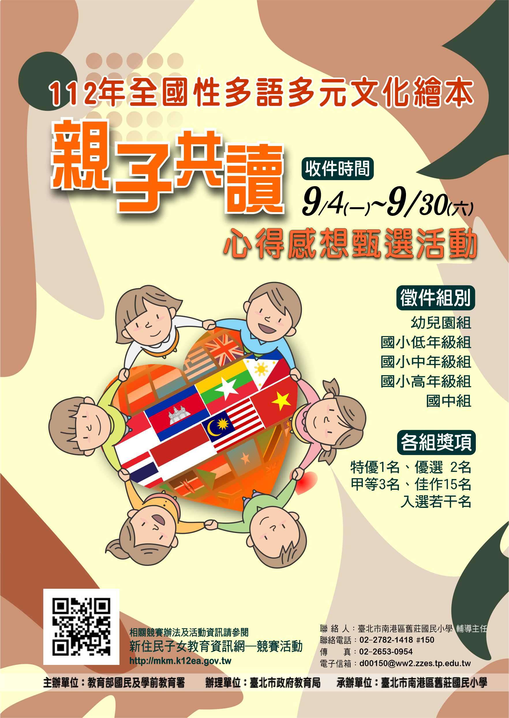 六、檢附112年度全國性多語多元文化繪本親子共讀心得感想甄 選活動計畫及電子海報各1份。