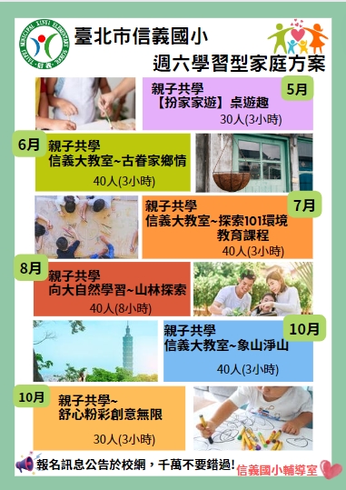★參與對象:信義國小學生家庭,親子共同參與,以弱勢家庭為優先錄取。
