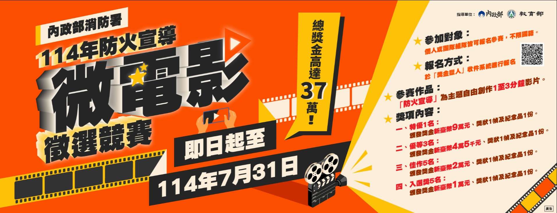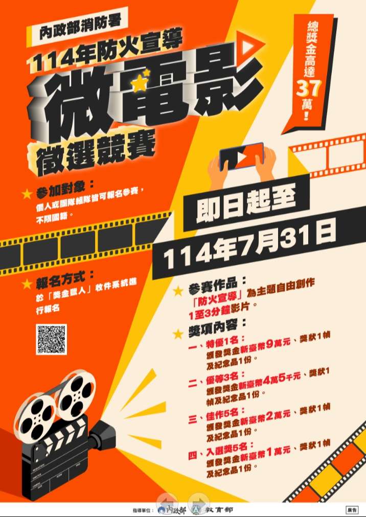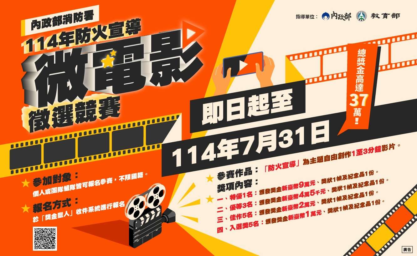 轉知 函轉內政部消防署「114年防火宣導微電影徵選競賽活動辦法」及徵件圖卡等資訊-臺北市政府教育局 函