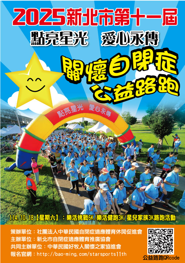 時間:114年10月18日7:00-12:00地點:新北大都會公園→幸福水漾園區報名時間:3月1日-8月31日止相關活動資訊請參閱簡章