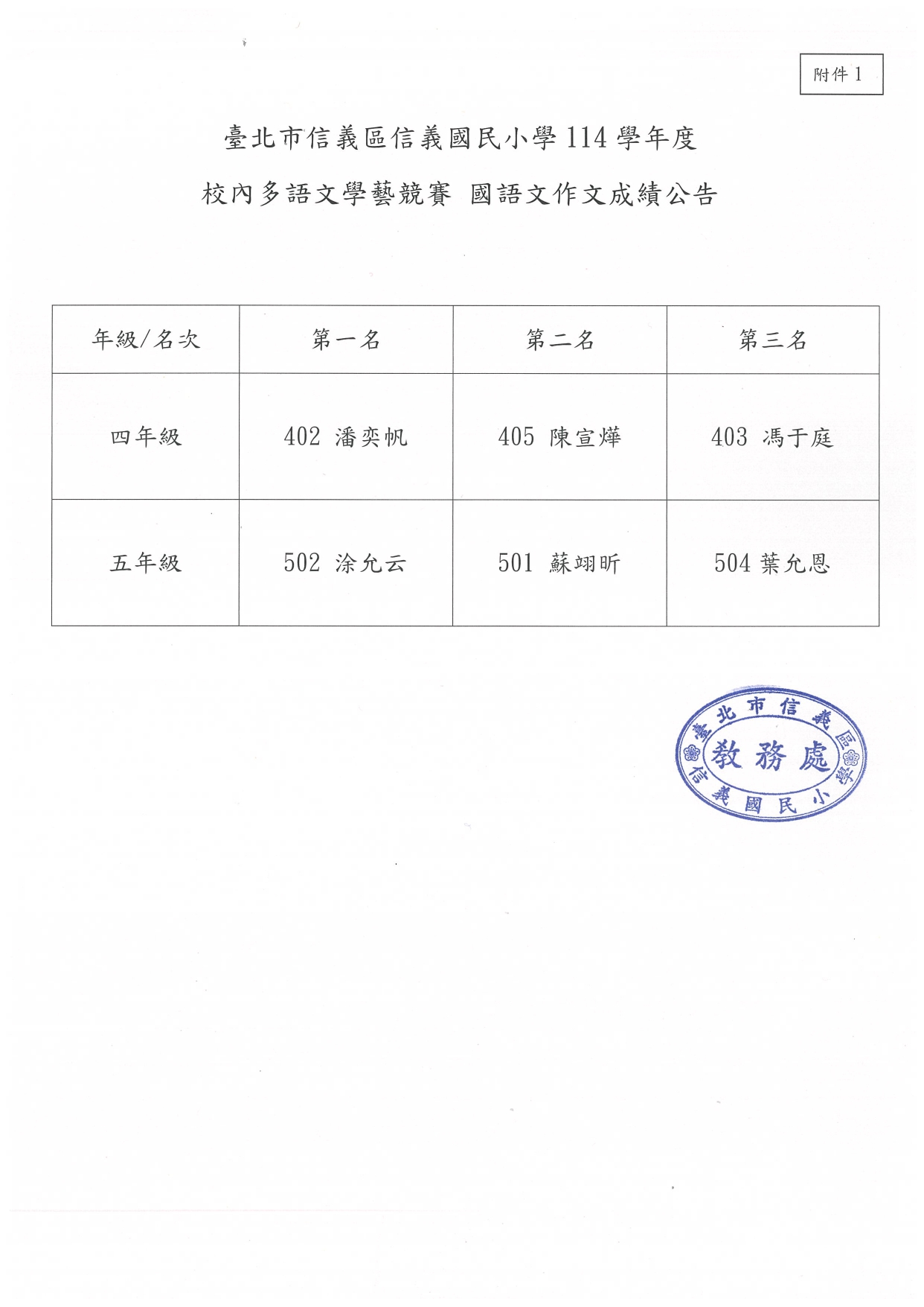 一、依據:臺本市信義區信義國民小學114學年度校內多語文學藝競賽實施計畫辦理。